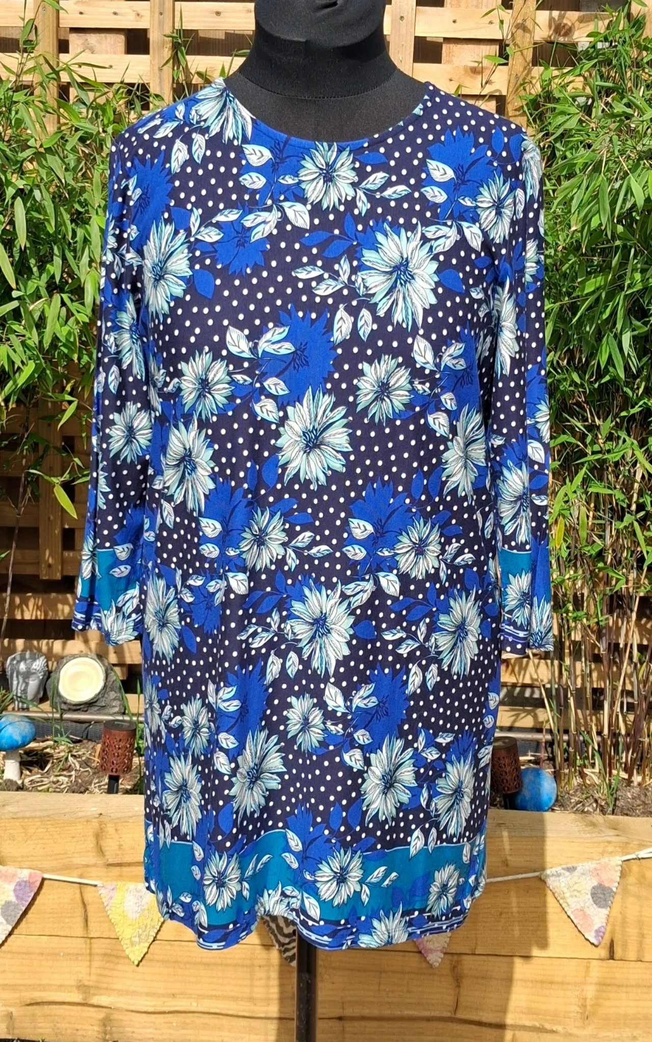 Beautiful, pre-loved, floral tunic, super soft, stretchy material, great as a short dress, or team with your favourite leggings.