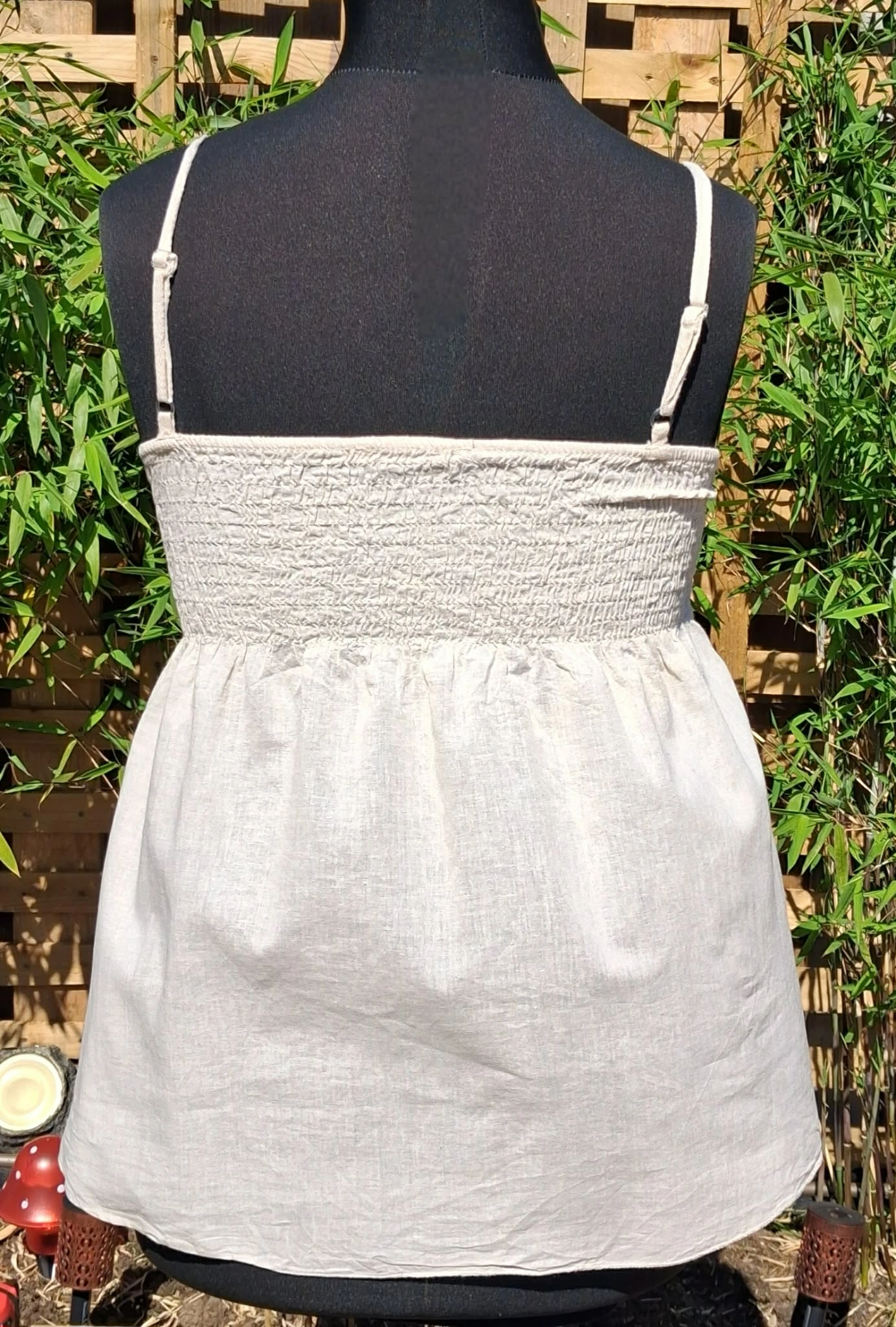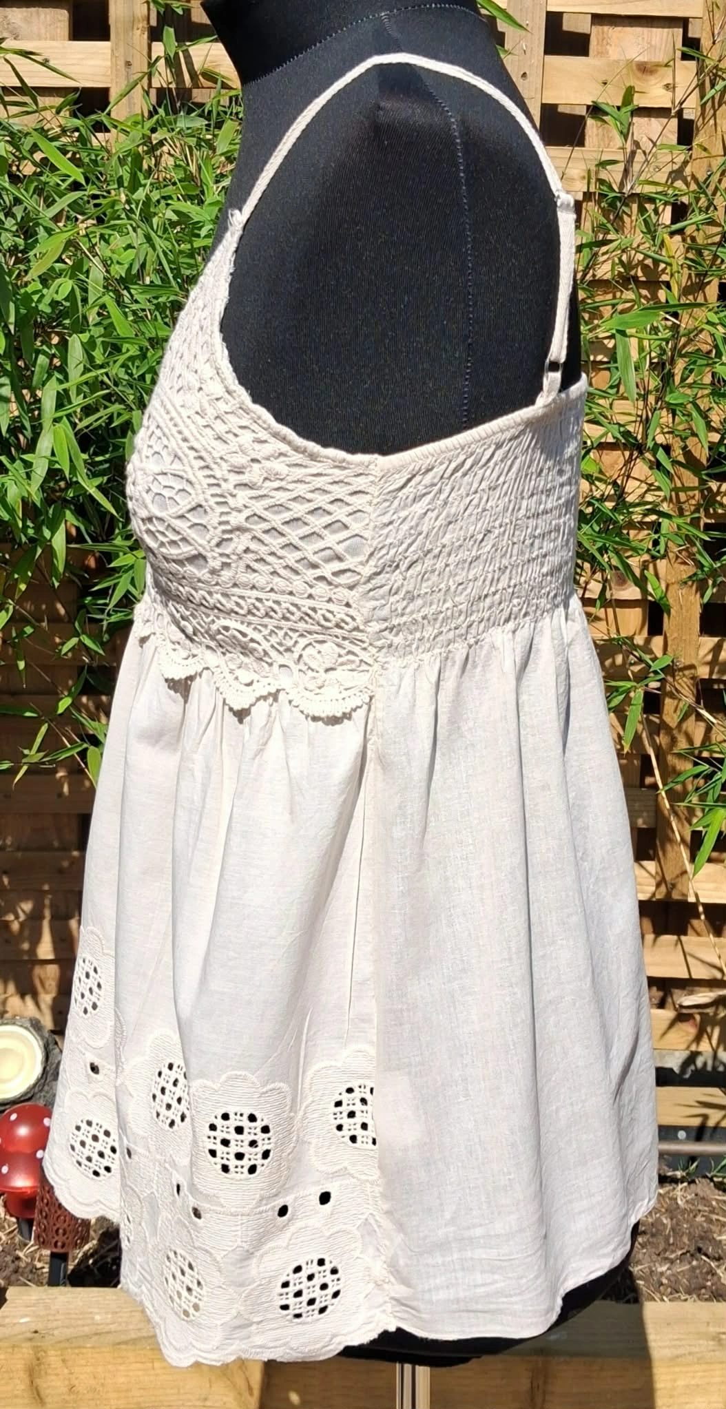 super cute, off white coloured, crochet vest top, adjustable straps to suit, gorgeous flower patterns around the bottom.
