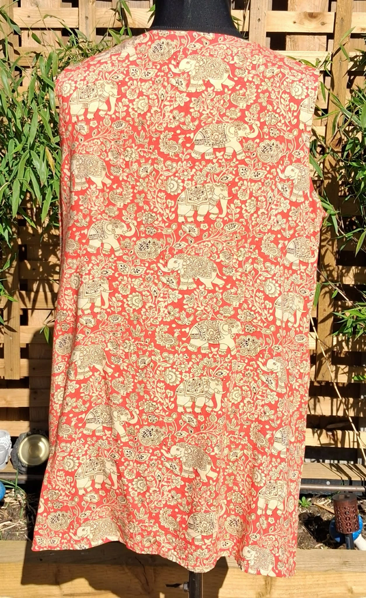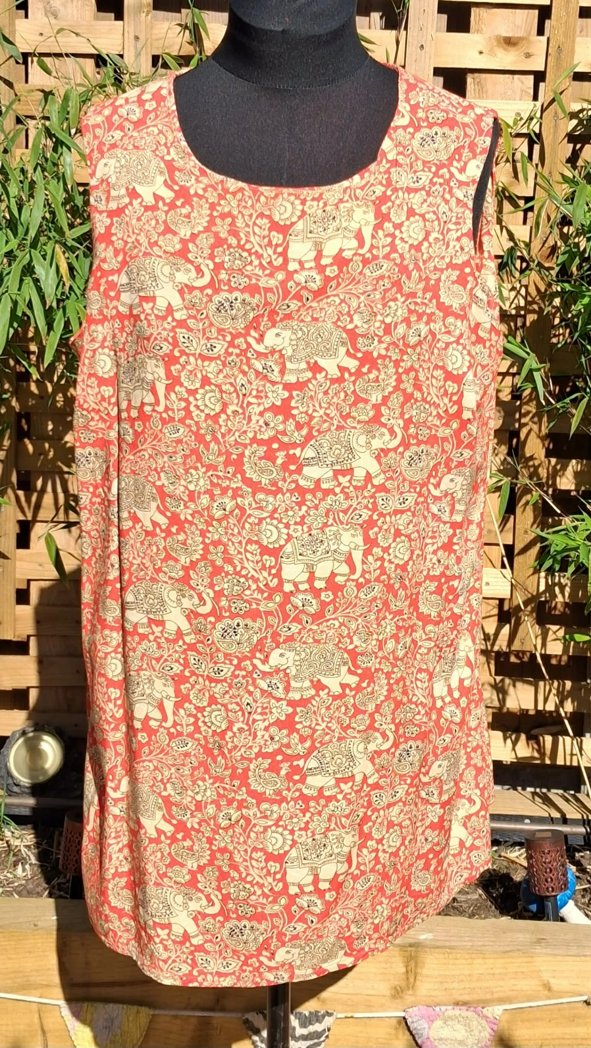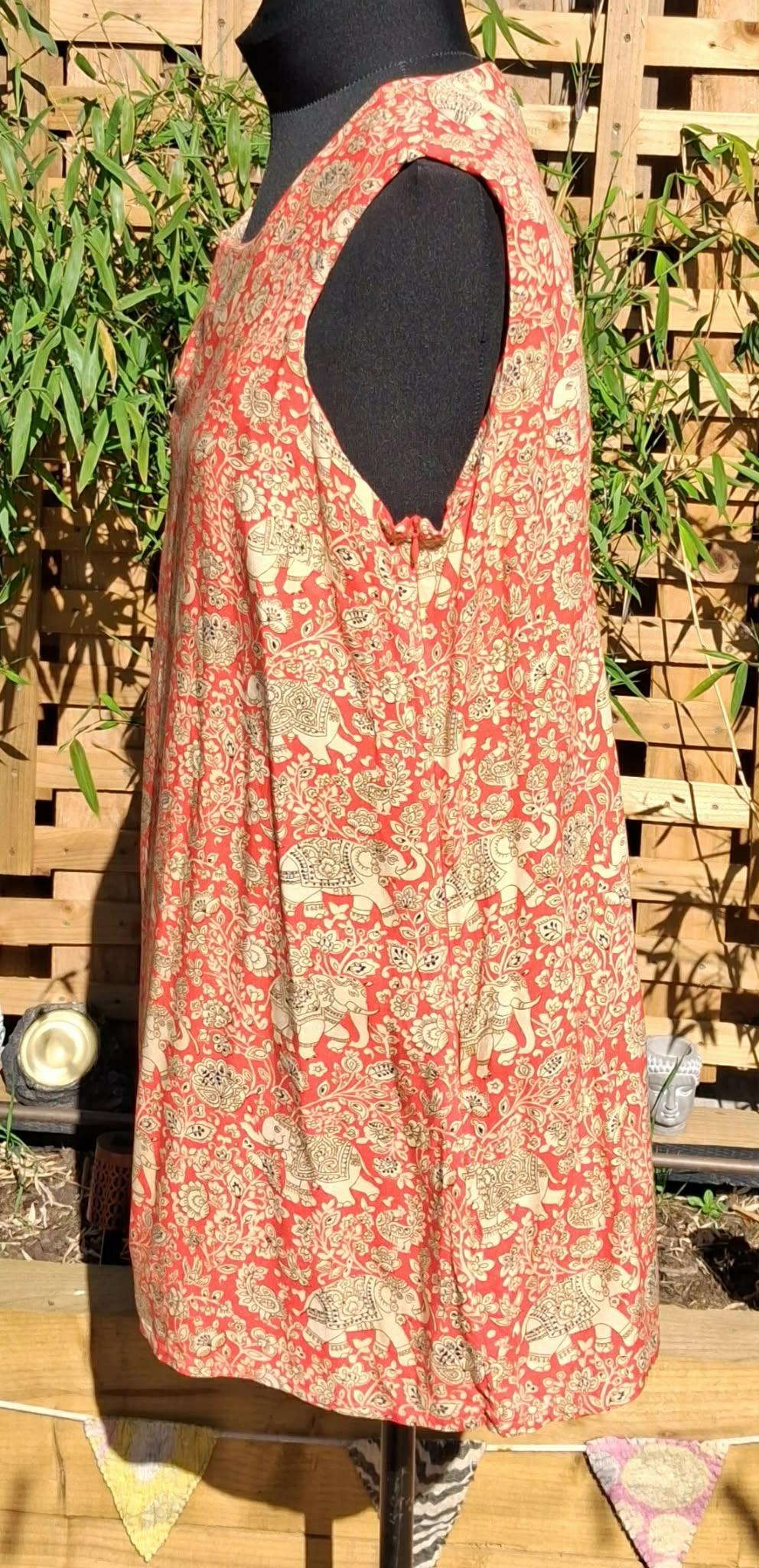 beautiful, elephant and floral print, sleeveless tunic/short dress, beautiful vibrant reds and creams, size 20 but comes up small.