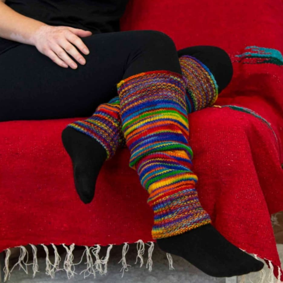the most gorgeous, colourful, fleece lined legwarmers, vibrant and groovy, adult freesize, great with our funky tie dye leggings, keeping you snuggly.