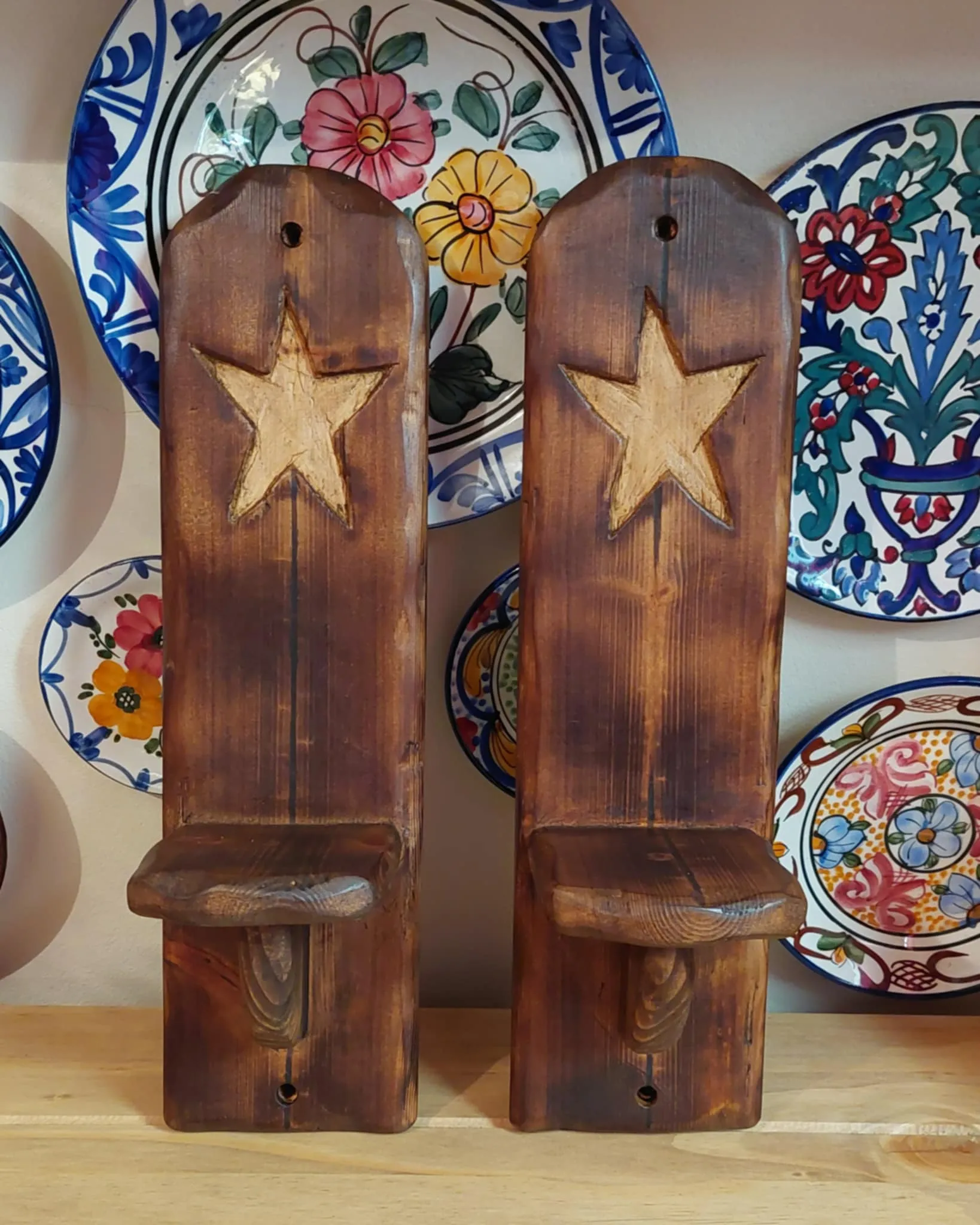 Handmade, here at the little hippie shop, beautiful wall sconces, using reclaimed wood, great for candles, or displaying your favourite things.