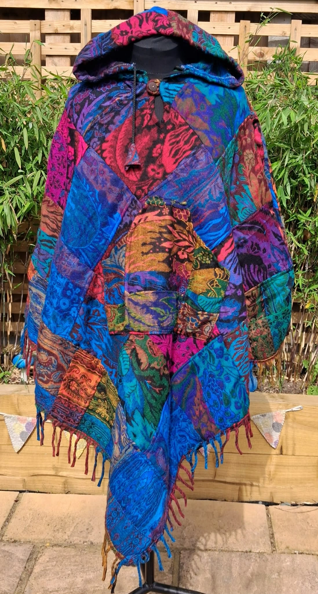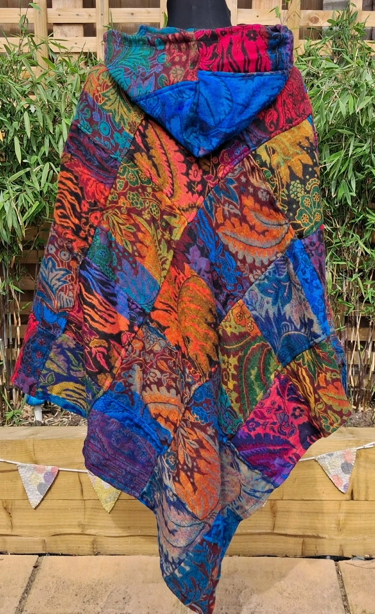 preloved woodland poncho, kangaroo pocket, fabulous hood with ties to suit, super soft and snuggly, great for chilly evenings.